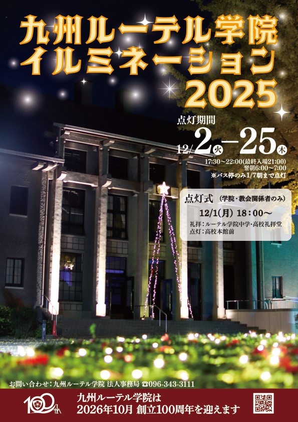 なお、今年も学内及びルーテル学院前バス停にて、約20,000個の煌びやかなイルミネーションが点灯されます。